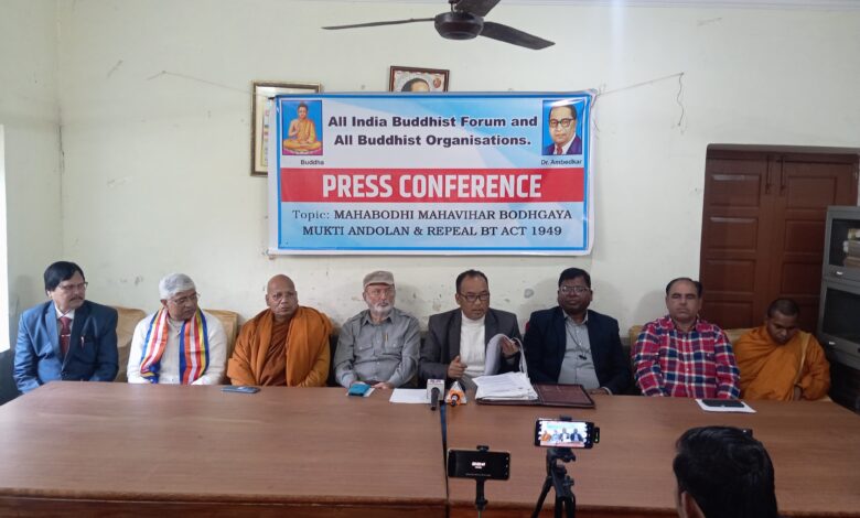 दिल्ली: ऑल इंडिया बुद्धिस्ट फोरम एवं सभी बौद्ध संगठनों द्वारा आयोजित की गई प्रेस कॉन्फ्रेंस में पत्रकारों को संबोधित करते हुए ऑल इंडिया बुद्धिस्ट फोरम के महासचिव सिरी आकाश लामा ने कहा कि विश्व में बौद्धों के सर्वोच्च पावन ऐतिहासिक स्थान बोधगया का महाबोधि महाविहार जहां पर दुनिया भर के देशों से बौद्ध भिक्षु भिक्षुणी उपासक उपासिका श्रद्धालु हर दिन आते है। लेकिन सबसे हैरान करने और दुख वाली बात है कि महाबोधि महाविहार का प्रबंधन गैर बौद्धों के पास है।